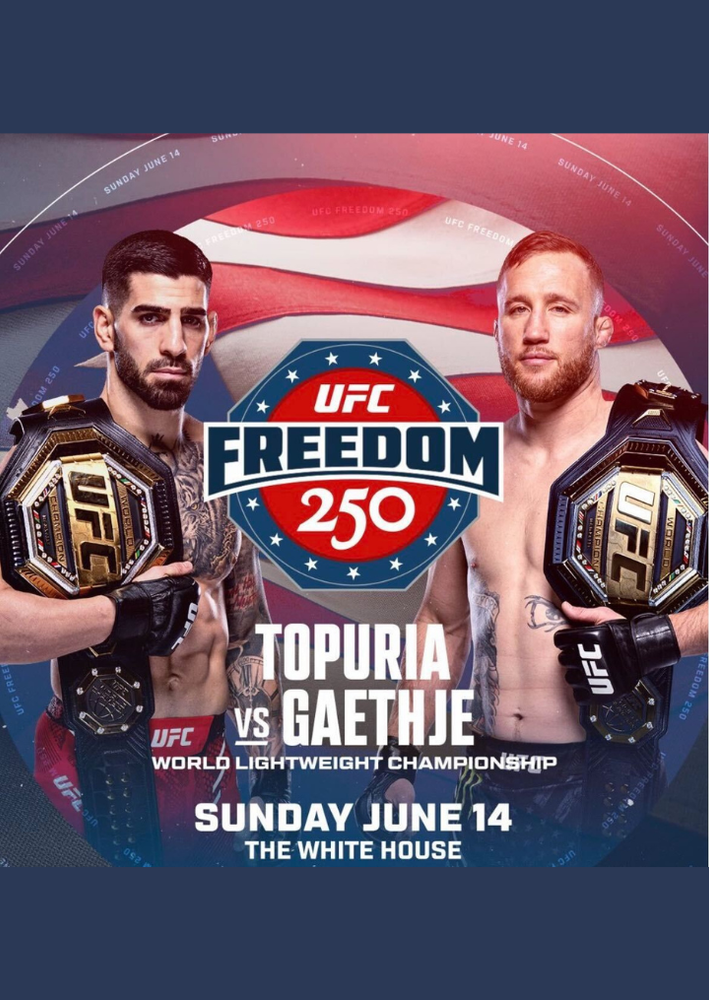 To commemorate the 250th anniversary of the United States, UFC is planning a historic once-in-a-generation event at the White House on June 14 and will include a total of six bouts. UFC Freedom 250, will feature a lightweight championship bout between Ilia Topuria and Justin Gaethje as the main event.